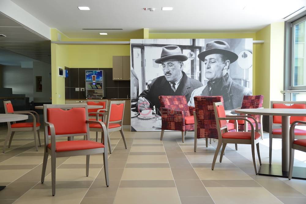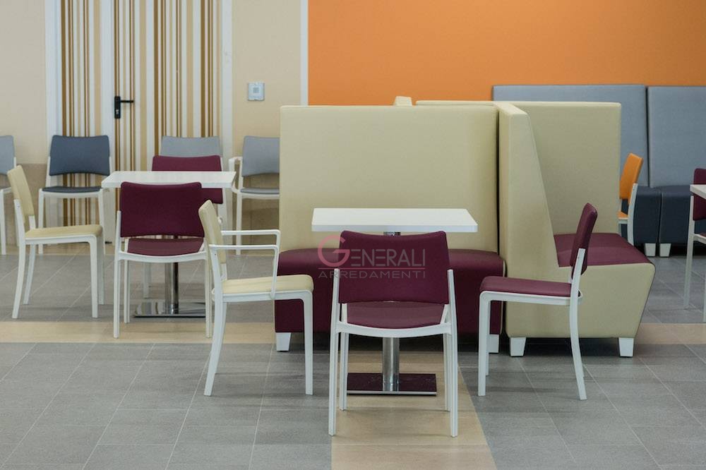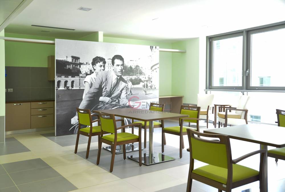 Arredi prodotti con diverse tipologie in quanto destinati alla presa in carico di diverse utenze: ogni nucleo è diverso dall'altro per aiutare l’orientamento, e ogni piano ha una piazza con una zona relax dove potersi incontrare.