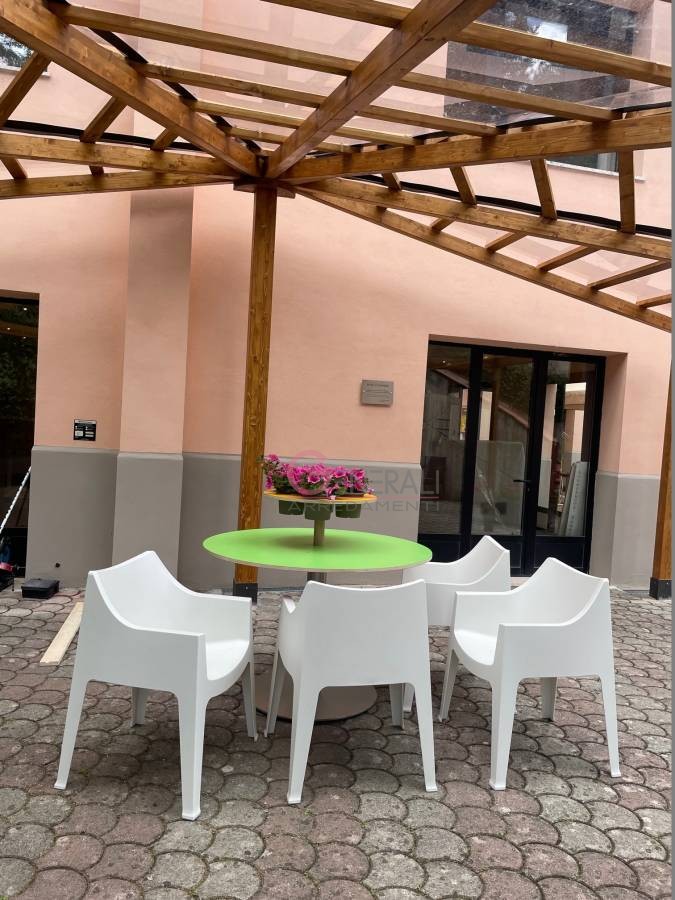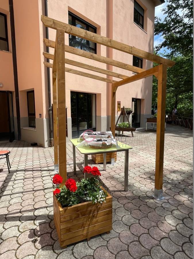 Riconfigurazione esterna ed interna degli spazi attività. Inserimento parete mobile per suddivisione del salone principale per permettere una gestione suddivisa e contemporanea degli ospiti. Esterni organizzati e progettati per fruire di ogni angolo per Garden Therapy, Ortoterapia e Terapia Vibroacustica.