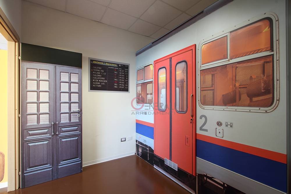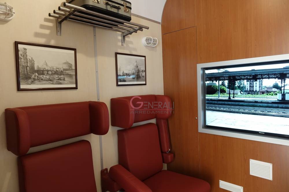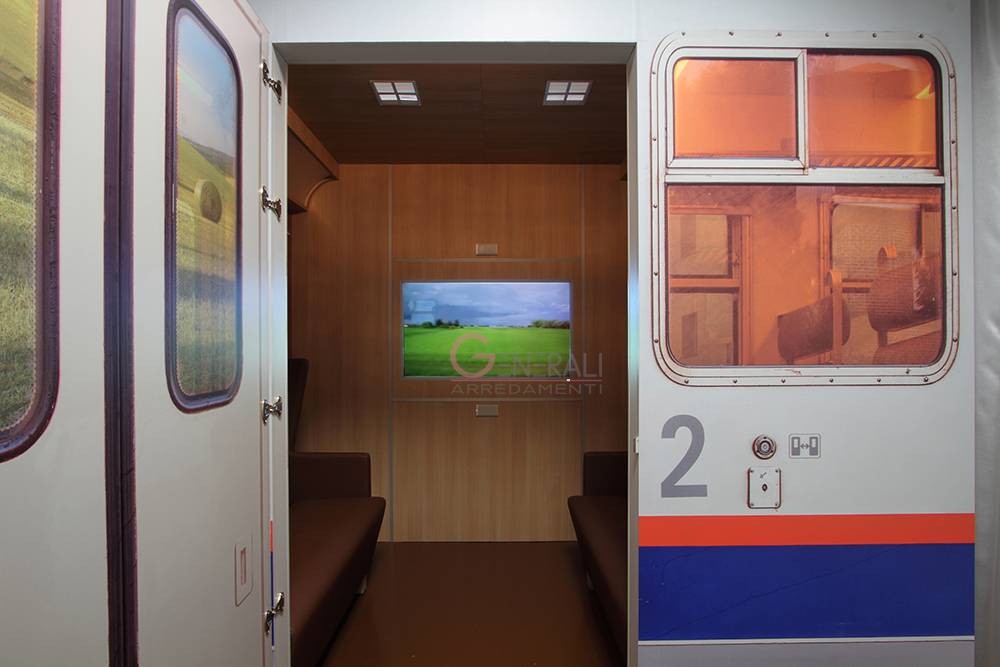Generali Arredamenti realizza a misura per ogni struttura veri e propri scompartimenti ferroviari, utilizzando gli arredi e le caratteristiche della Littorina FS (per realizzazioni all’estero prendiamo spunto da modelli locali ) un ambiente carrozza ben definita, e facilmente riconoscibile negli arredi , strutturata tecnologicamente con sistemi e attrezzature che rievocano una carrozza ferroviaria degli anni 60/70