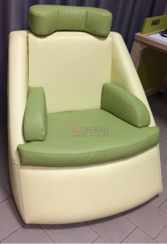 La poltrona Iremia è realizzata da Generali Arredamenti srl e risponde alla richiesta di strutturare una seduta comoda, stabile, avvolgente, di dimensioni ridotte che consente il passaggio dalle porte con una movimentazione con ruote retrattili, ma che allo stesso tempo grazie alla sua conformazione, possa essere di contrasto al naturale sbilanciamento in avanti, attenuando così il rischio di caduta frontale.