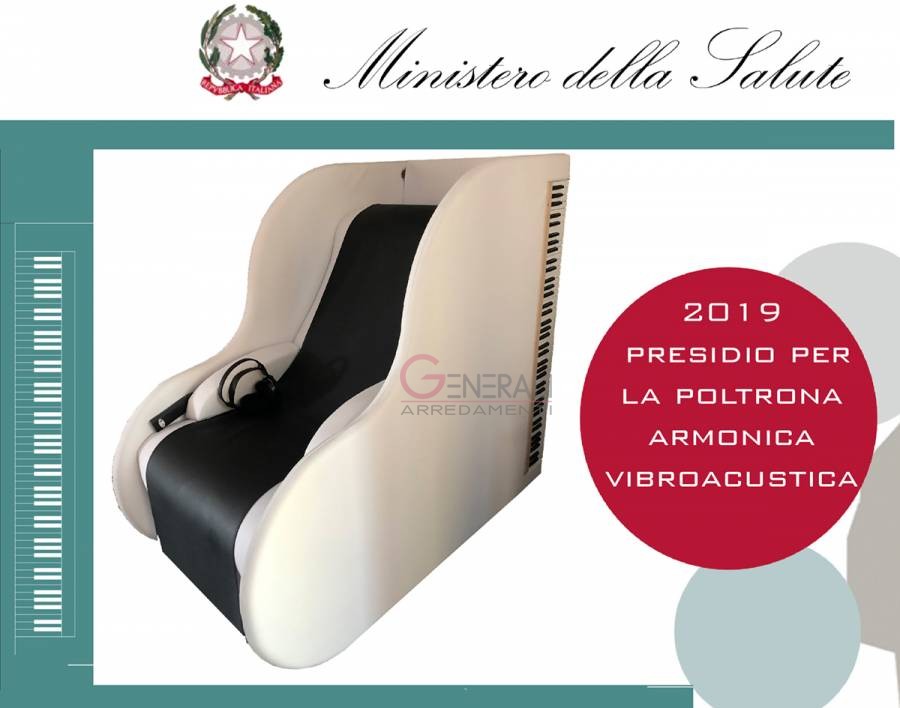 terminazioni nervose del corpo. Poltrona studiata ed ideata dal Dott. Riccardo Della Ragione, musico terapista e compositore e brevettata ottenendo il brevetto “HARMONIC VIBRO-MASSAGE UNIT “