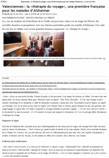 Valenciennes : la «thérapie du voyage», une première française pour les malades d’Alzheimer - La Voix du Nord - Valenciennes: il "viaggio della terapia", una prima assoluta per i pazienti di Alzheimer Francese - La Voix du Nord -