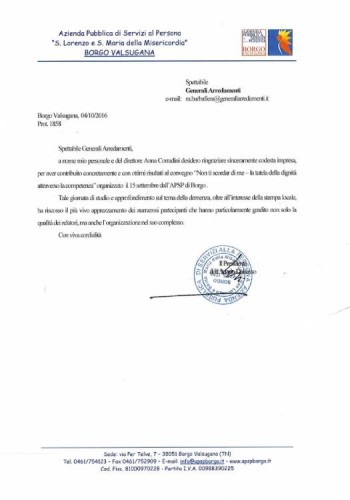 APSP S.Lorenzo E S.Maria della Misericordia Borgo Valsugana - Riscontro in merito al convegno "NON TI SCORDAR DI ME - LA TUTELA DELLA DIGNITA´ ATTRAVERSO LA COMPETENZA" del 15 settembre 2016.