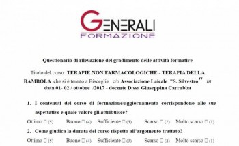 Questionario valutazione corso Terapia della Bambola - Bisceglie 01/02 ottobre 2017