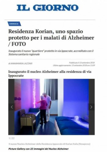 Il Giorno - Inaugurazione del Nucleo Alzheimer all´interno della Residenza Korian di Via Ippocrate a Milano, realizzato da Generali Arredamenti.