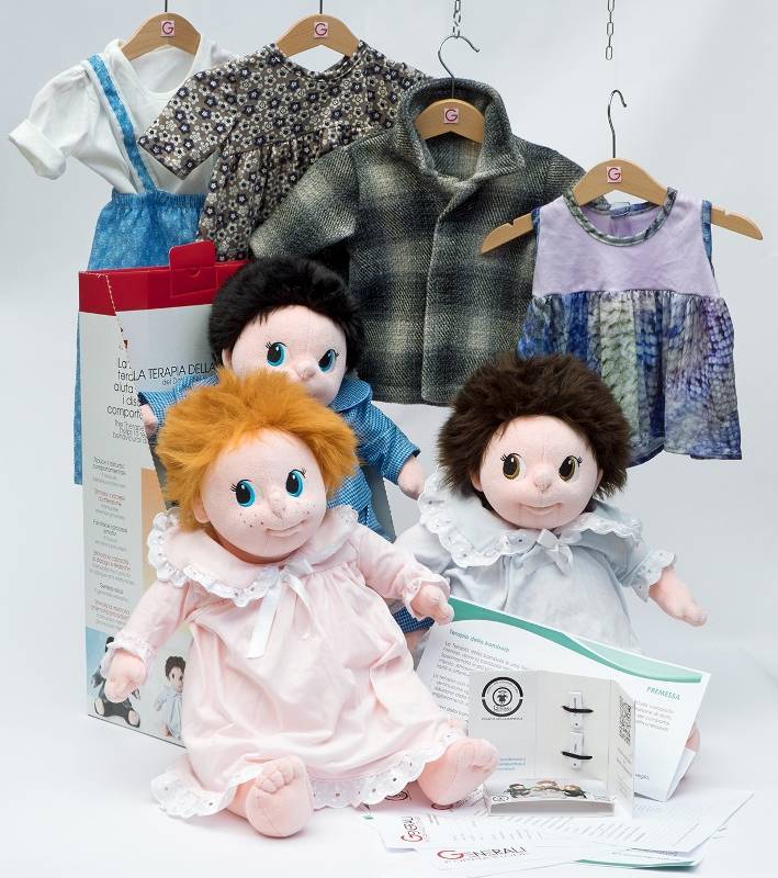 Domenica, Rina e Mario sono bambole terapeutiche progettate dal Dott. Ivo Giovanni Cilesi, prodotte e distribuite in esclusiva mondiale da Generali Arredamenti Srl e pensate espressamente per persone con decadimento cognitivo Alzheimer. Le bambole sono realizzate interamente a mano in Italia, su disegno esclusivo, con le seguenti caratteristiche: aumento del peso nella zona seduta in modo da dare così la sensazione di tenere un vero e proprio bambino in braccio; realizzata con tessuto di finitura in ciniglia in colore roseo; capelli realizzati con tessuto a pelo in colori nero e rosso; occhi ricamati in marrone e azzurro. Le bambole sono asessuate, presentano l´ombelico tattile e vengono fornite ognuna completa dei propri abiti per orientamento temporale Primavera/Estate/Autunno/Inverno (mutandine, vestito a maniche corte, vestito a maniche lunghe, camicia o pigiama da notte, cappotto).