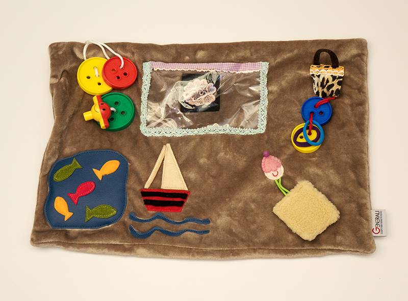 La Copertina è strutturata con una selezione di piccoli oggetti, i cosiddetti "elementi di stimolazione", che vanno a stimolare le attività motorie/cognitive e conseguentemente di relazione con gli altri.